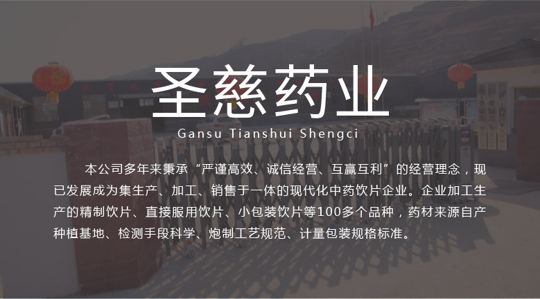 甘肅天水圣慈藥業有限公司成立于2016年11月8日,注冊資本500萬元,位于甘肅省天水市張川回族自治縣張川鎮中城南路,本公司多年秉承“嚴謹高效、誠信經營、互贏互利”的經營理念,現已發(fā)展成為集生產、加工、銷售于一體的現代化中藥飲片企業。企業加工生產的精制飲片、直接服用飲片、小包裝飲片等100多個品種,藥材來源自產種植基地、檢測手段科學、炮制工藝規(guī)范、計量包裝規(guī)格標準。